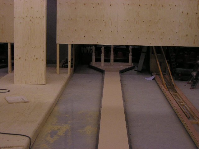 Vrijdag 12 mei. Een proefopstelling van de kegels. Eerst moeten de kegelhouders nog gemonteerd worden aan de machines. Dan de installatie uitlijnen en het geheel vastzetten op de staalconstructie zodat de kegels precies op de contacten komen